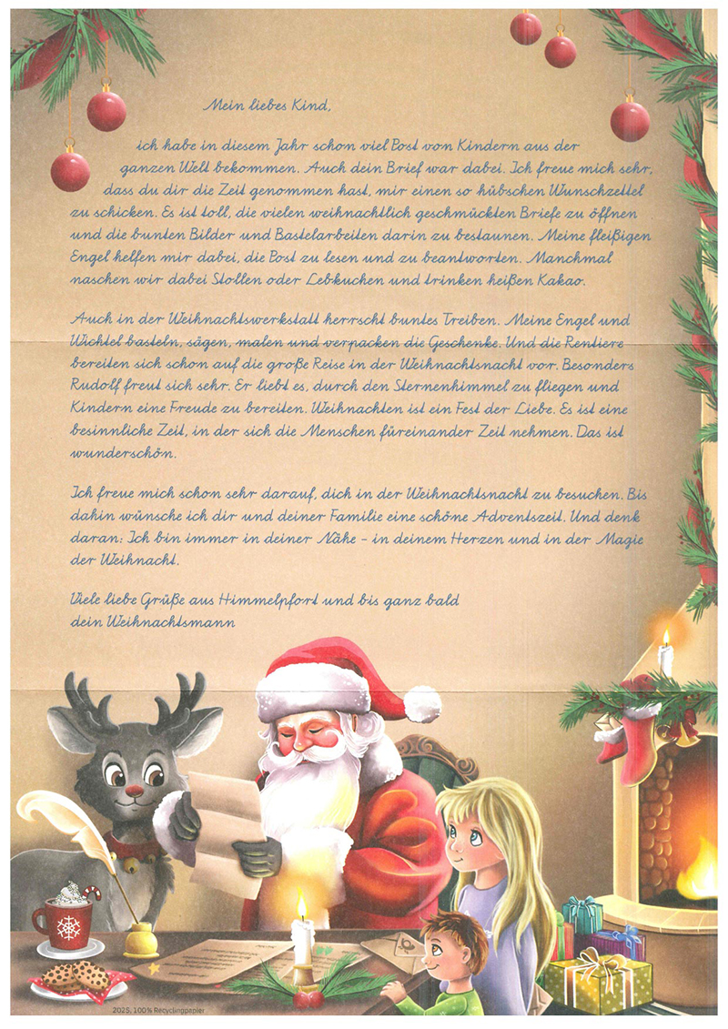 Unsere Gäste konnten der Magie nicht widerstehen und haben dem Weihnachtsmann in diesem Jahr einen ganz persönlichen Brief geschrieben. Nun liegt ein Hauch festlicher Spannung in der Luft – wir warten voller Vorfreude auf Antwort aus dem fernen Himmelpfort.
